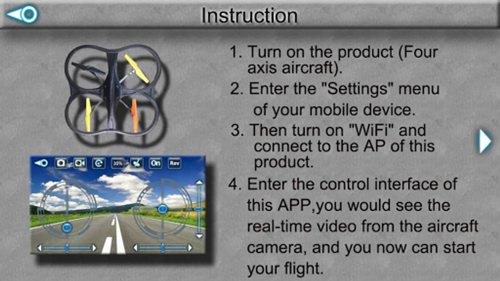 This APP can control the 4-axis aircraft by WiFi on the Android smartphone, and also can get the real time video from the aircraft, and take the photo and save the video .