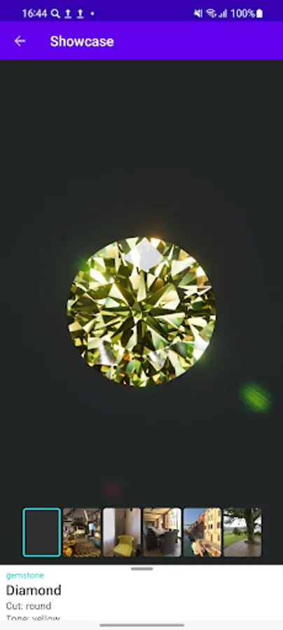 In the library of gemstones, you can choose a variety, shape, color and then use all the functions of the application to view a gemstone by itself, including the try-on mode on the hand.