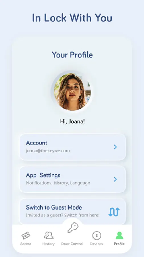 Don't need keys, passwords, cards. Just get the KeyWe app on your smartphone.