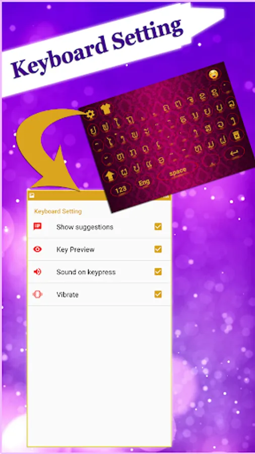 If you desire to change your mobile keyboard color and style, you'll require a Lao 5 row keyboard customize such as Lao typing keyboard with colorful keyboard themes. Feel free to desire any beauty themes from keyboard themes and to set it as your keyboard background themes. Lao Typing Keyboard for Android is a simple and fast Lao writing keyboard app for Android devices. This Lao Alphabet keyboard theme app will allow you to write any text in Lao as well in Lao. With Laos writing App you can write all Lao letters, Alphabets, and Lao words.