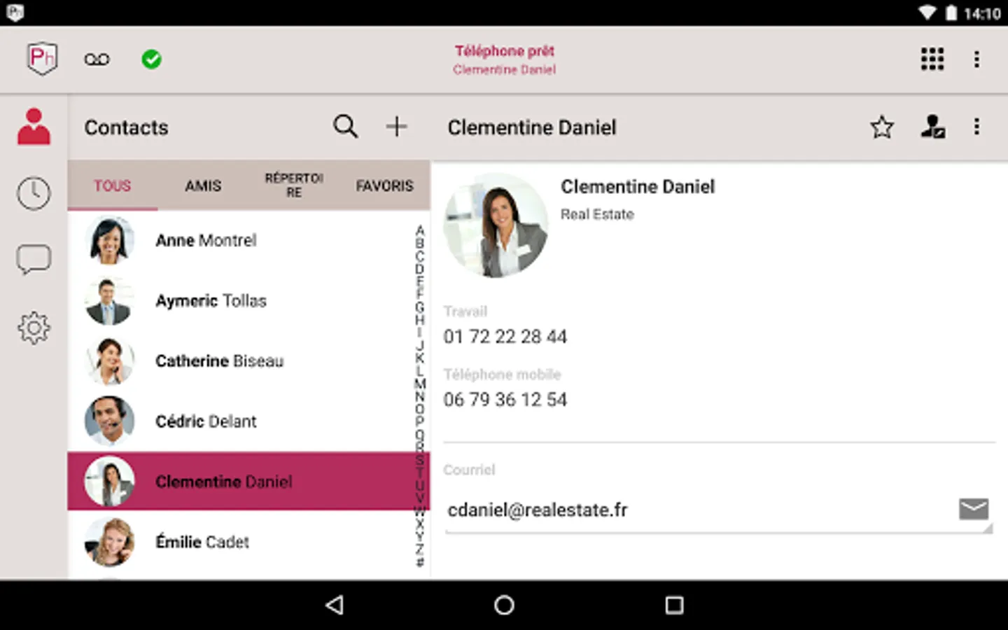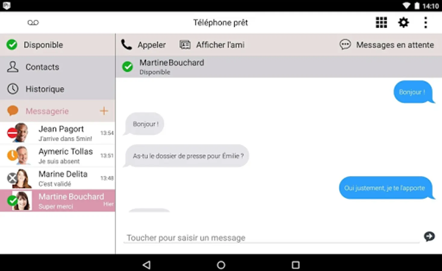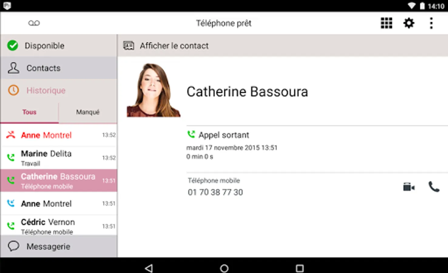 - Mobile Switchboard: call forwarding, call waiting, conference, voice mail, call log, access to the company directory, management of the reference profile, etc.