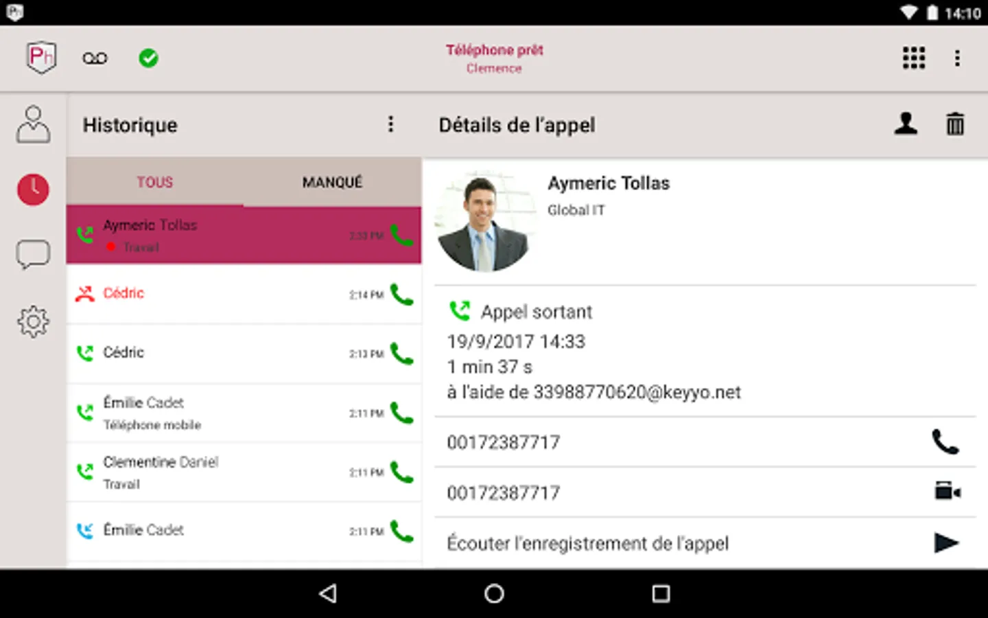 With Keyyo Phone, you take your standard Keyyo with you in all circumstances, and you choose when and how to communicate: voice, video or instant messaging.