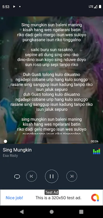Immediately have this application for free right now. In the Esa Risty Full Album 2021 song application, besides being able to be played offline, complete lyrics have also been provided which can guide you to sing and karaoke. If you don't memorize the lyrics this will really help you sing.