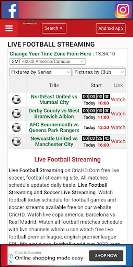 Live Schedule Of International & Club Football Matches Hosted On Various Channels.
