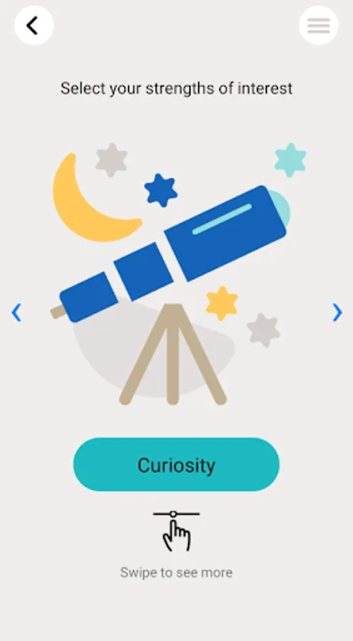 identified by the field of positive psychology. The app provides a description of these strengths, as well