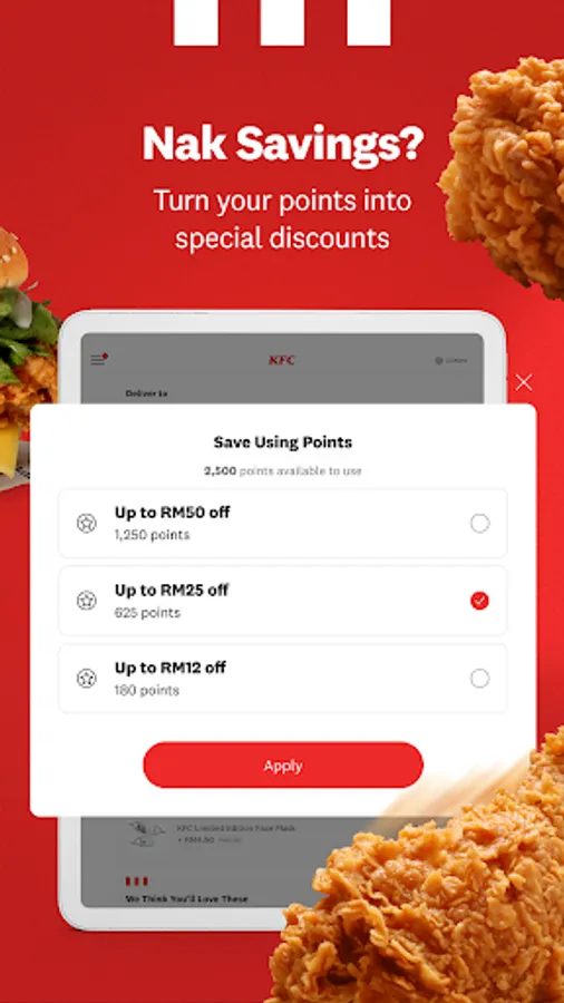 Earn points with every order and redeem your KFC Reward Points instantly on your next purchase.