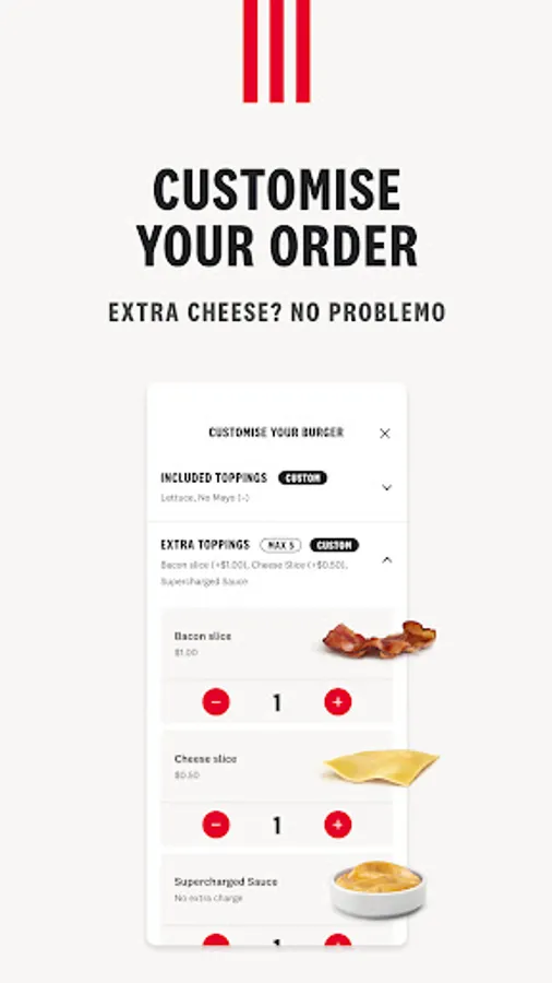 Be a lil extra and get your meal just how you like it. Add bacon? Easy. More mayo? Done.