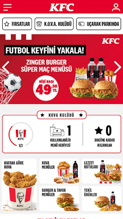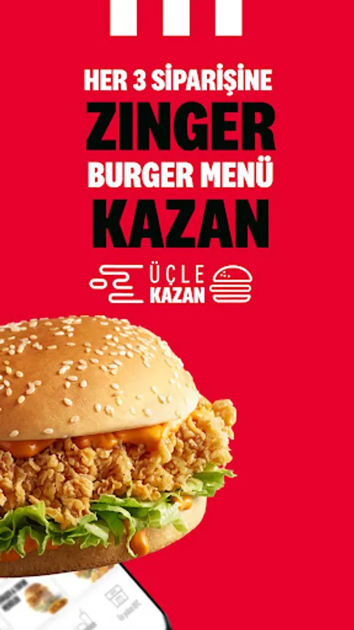 Just enter KFC's application full of indescribable flavors and order our delicious menus, buckets and special menus for gamers with one click. Moreover, you will receive a Zinger Burger Menu as a gift in your first order after every 3 orders you place from the application.
