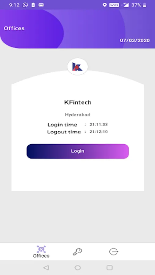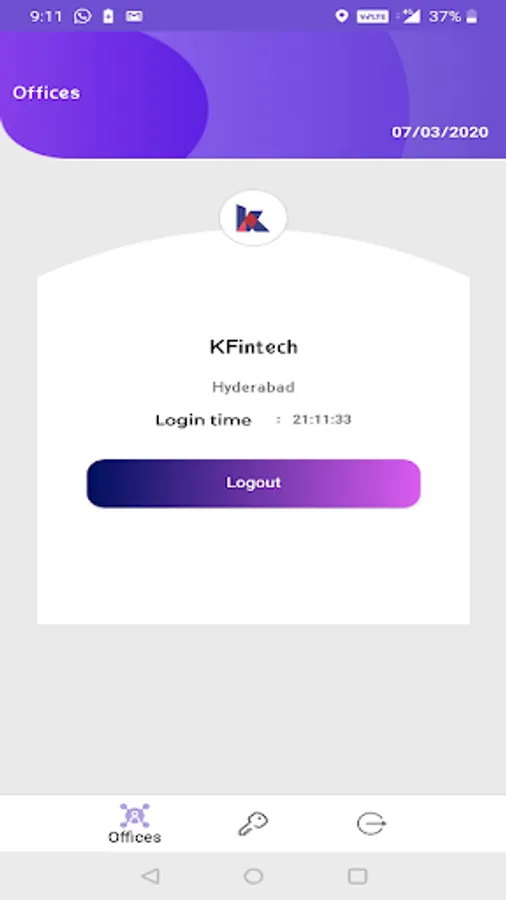 This app allows the KFintech employees to easily mark their daily attendance. Employees need to sign in with their registered username and password to access the app.