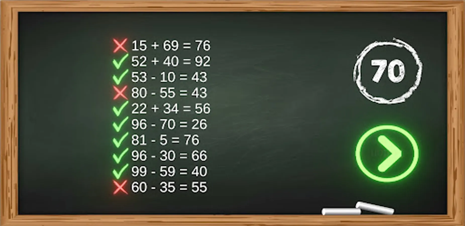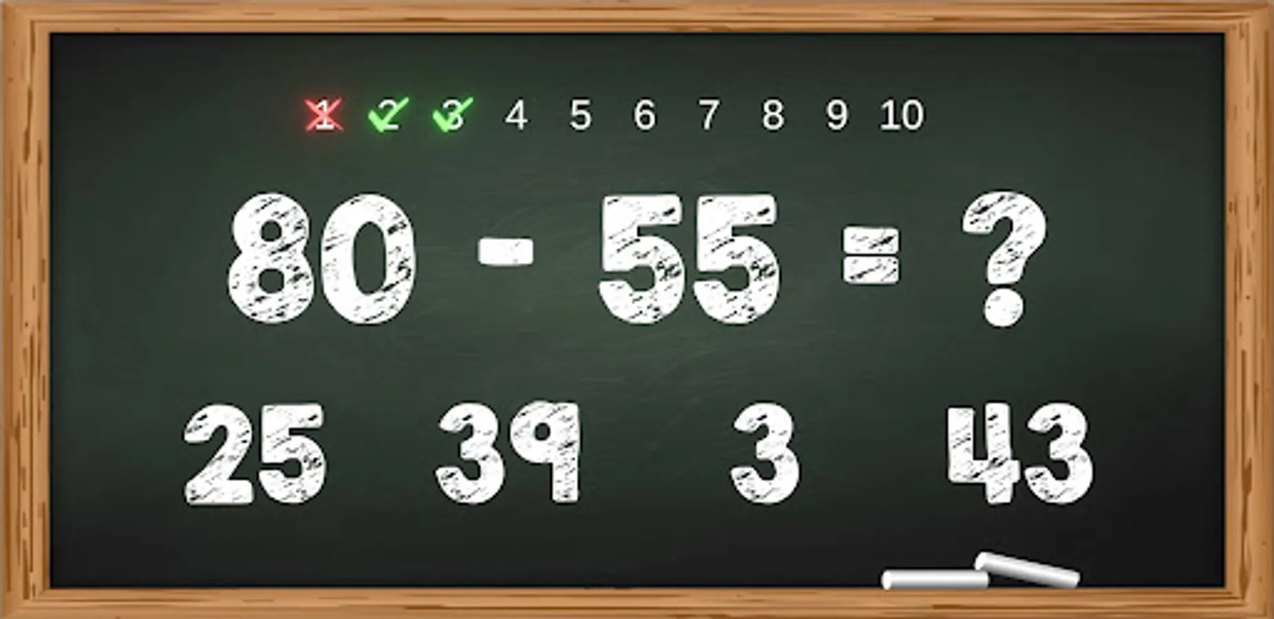 Sharpen your addition and subtraction skills using our app's multiple-choice exercises. Select your preferred level, track your performance, and improve at your own pace.