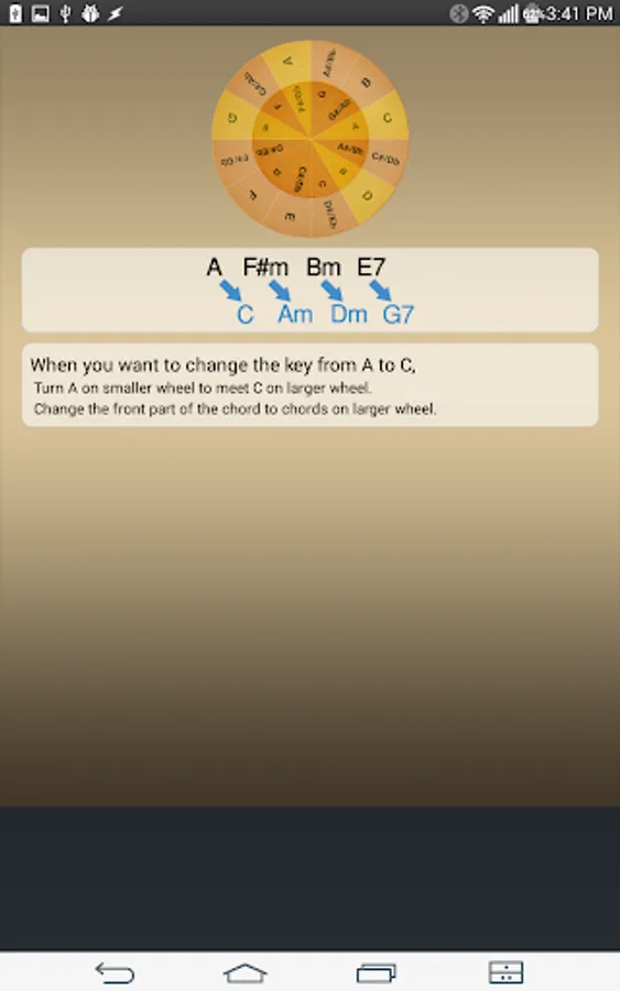 ex)When you want to change the key from A to C while chord progression is A, F#m, Bm, E7,