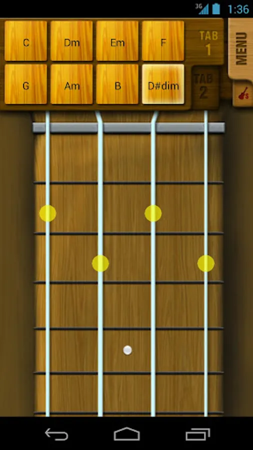 - Playing & switching saved chords(up to 8) in one screen(supports 2 tabs)