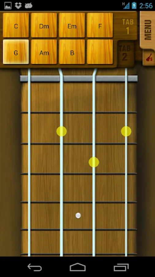 - Playing & switching saved chords(up to 8) in one screen(supports 2 tabs)