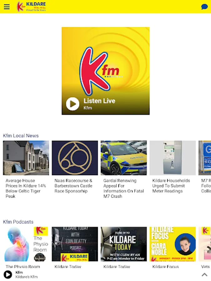 Kfm is Kildare's most listened to radio station and your number one source for local news, information, entertainment and much more.The Kfm app has all the news and events that matter to you, listen live or check out our podcasts. Listening to Kfm has never been easier!- Listen live.- Tune into our podcasts.- Connect with us across all our social channels.
