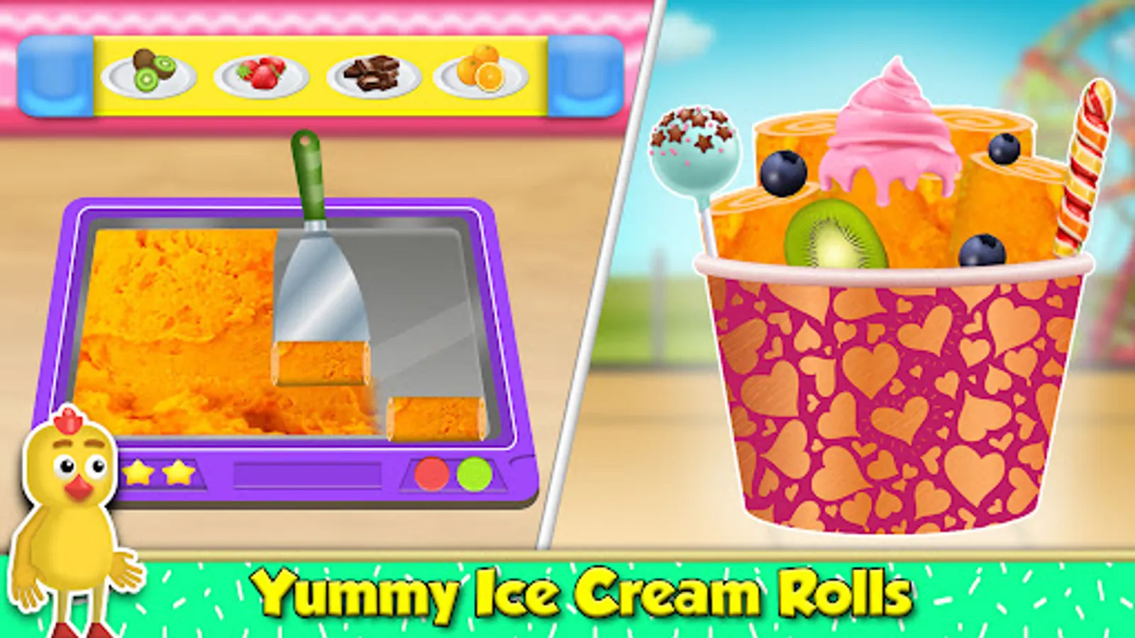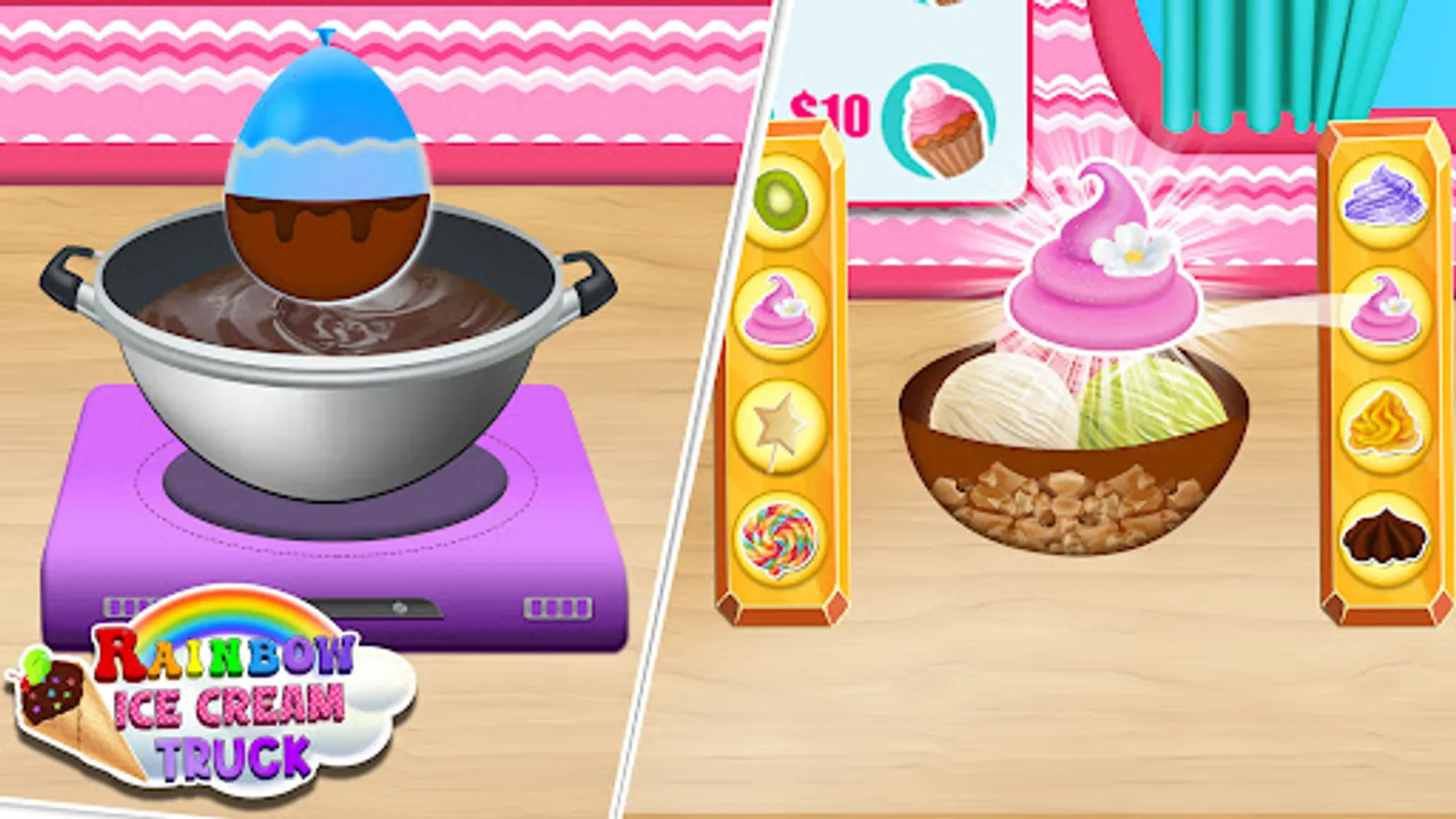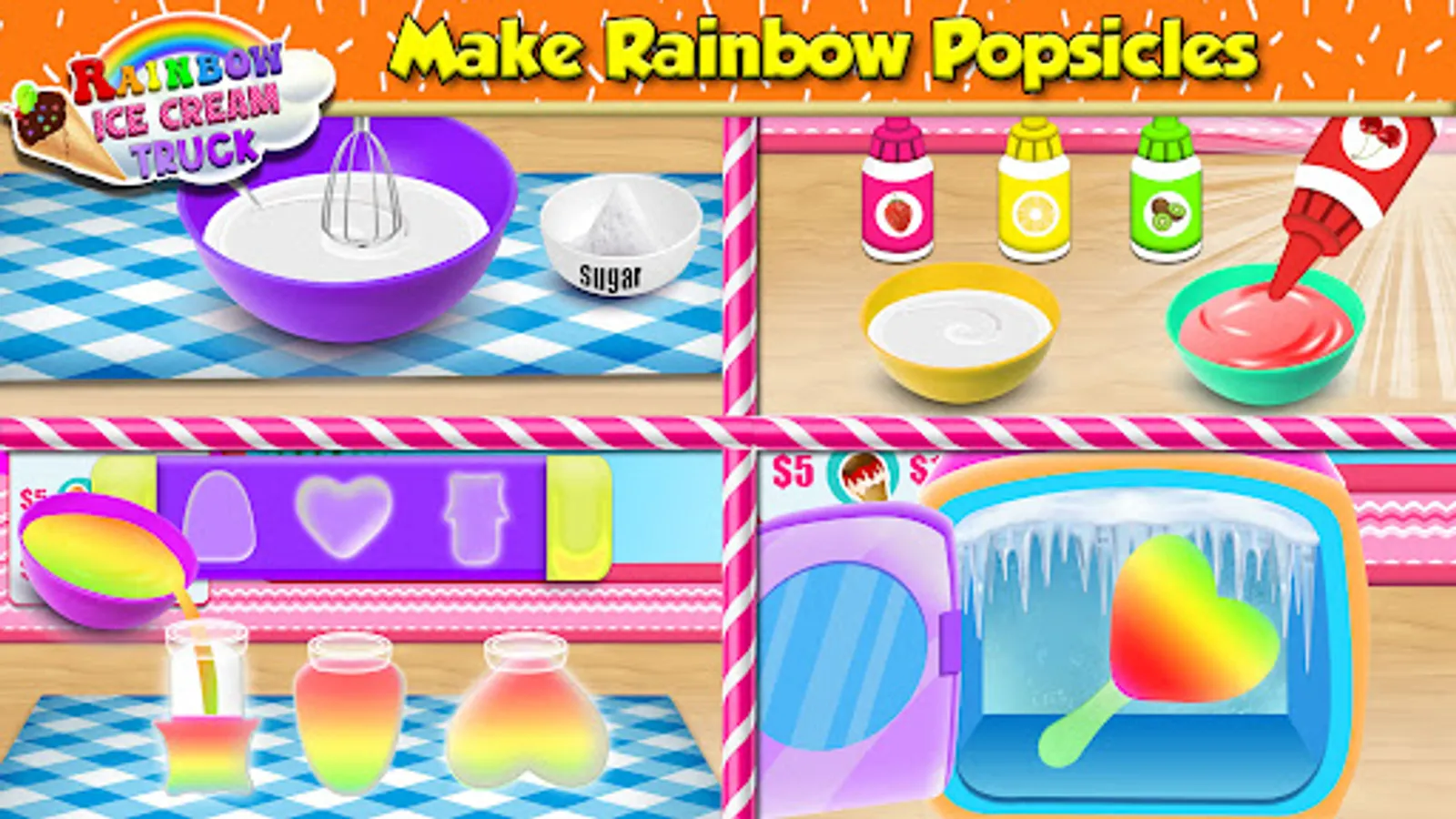 Let's be a professional creamy ice cream truck driver and sell yummy icy desserts in rainbow ice cream truck game. This sweet making kitchen games for girls brings modern & girly rainbow trucks to make frozen ice popsicles. Show your beans topping and decoration skills after a creative ice popsicle baking. This ice popsicle cooking fun is for the lovers of ice cream parlor & master bakery chefs. Adventure dessert cooking games on the sundae ice gola truck & unveil the ice lolly world's joy. Clean and maintain your girly truck for daily sweet dessert cuisine & baking mania missions. Show the world your madness and drive through the city roads to supply kitchen cooking game pastries and donuts. Begin your frosty ice cream maker journey with your Ice popsicle maker truck.