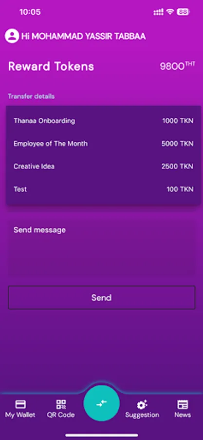 Thanaa is a cutting-edge reward system designed for enterprises. It operates on a private blockchain network, Hyperledger Fabric, and uses a unique token called THT. Users can earn, transact, and redeem THT within the enterprise's closed ecosystem. The Thanaa app has three types of users: users, rewards distributors, and shops.