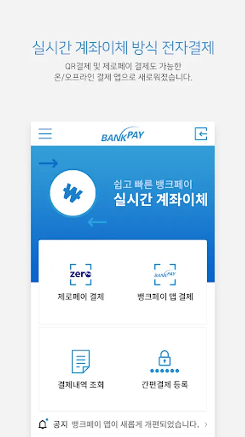 BankPay is an electronic payment app that allows you to pay by real-time account transfer using your bank or brokerage account when purchasing goods from mobile shopping malls and Zero Pay affiliated stores.