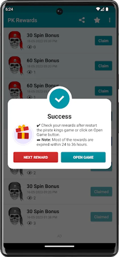 This app is not a gambling app we does not provide real money rewards, its provide virtual rewards like game play spin, coin, shield, bomb, card chests etc. We share only the rewards that helps you to play pirate kings game more.