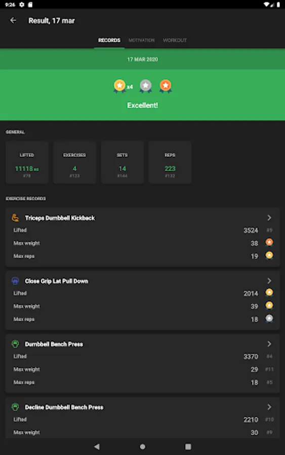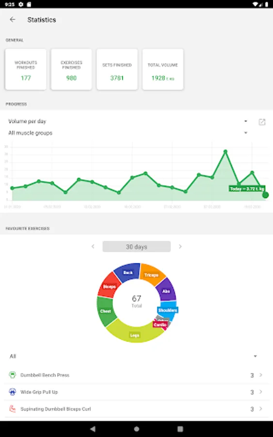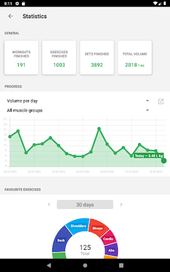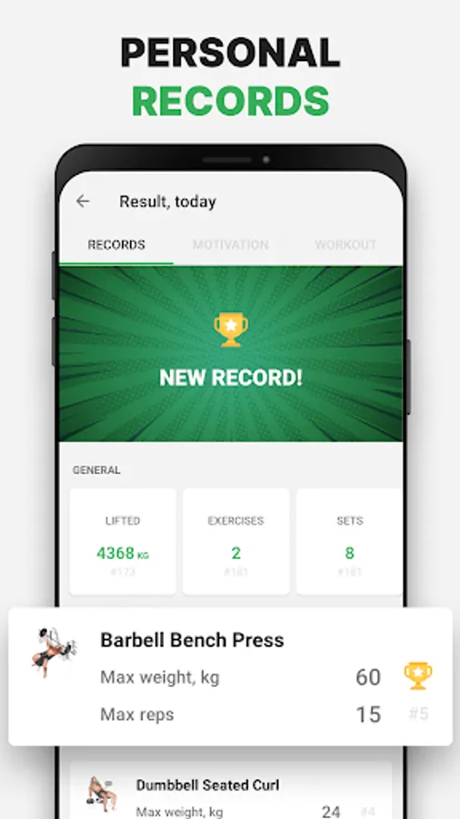 • Track your progress and personal records for each exercise and muscle group, analyze statistics with insightful charts and calendar history