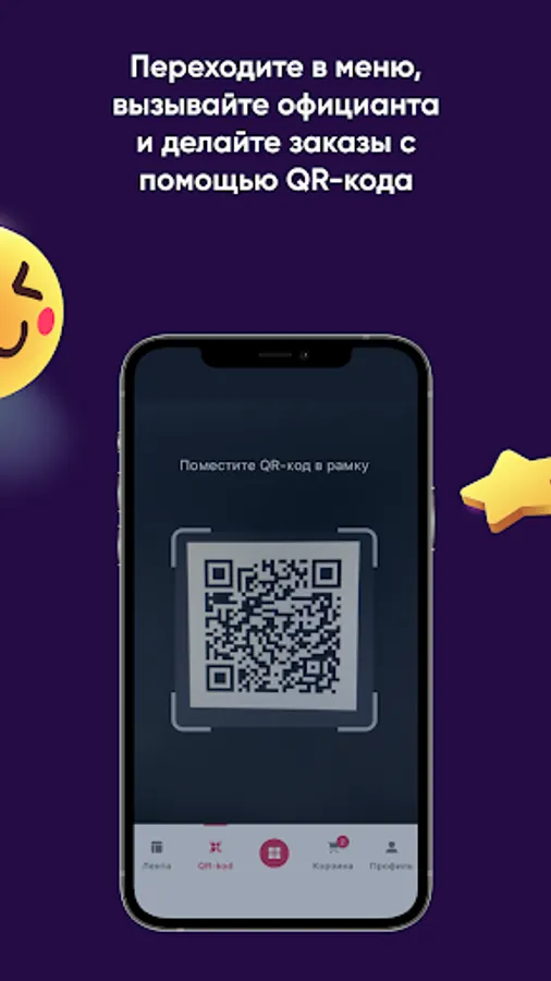 Being in the institution you have the opportunity to go to the menu of the institution just by recognizing the QR code. Call the waiter or place an order directly from the app!