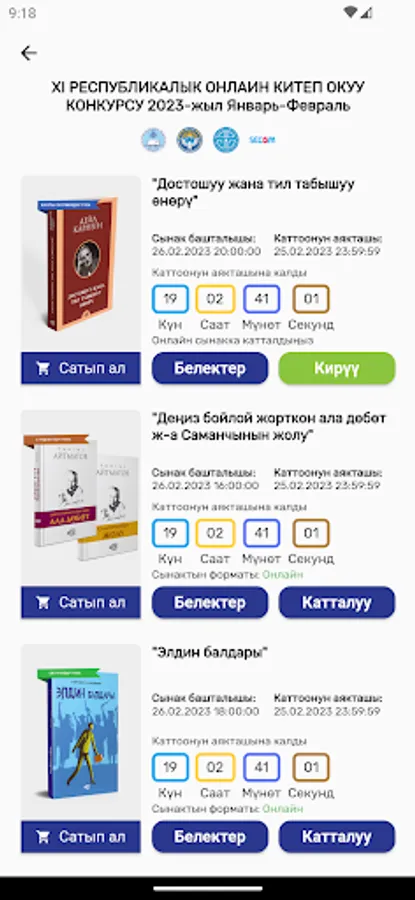 Бул долбоор негизделген күндөн бери (2018-2022-жылдары) ар кандай тематикадагы китептерден республикалык деңгээлде 10 жолу китеп окуу конкурсу уюштурулду.