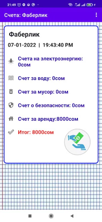 Transformation of information utility bills for tenants. Registration is free, the administrator transmits information individually to the tenants' personal account.
