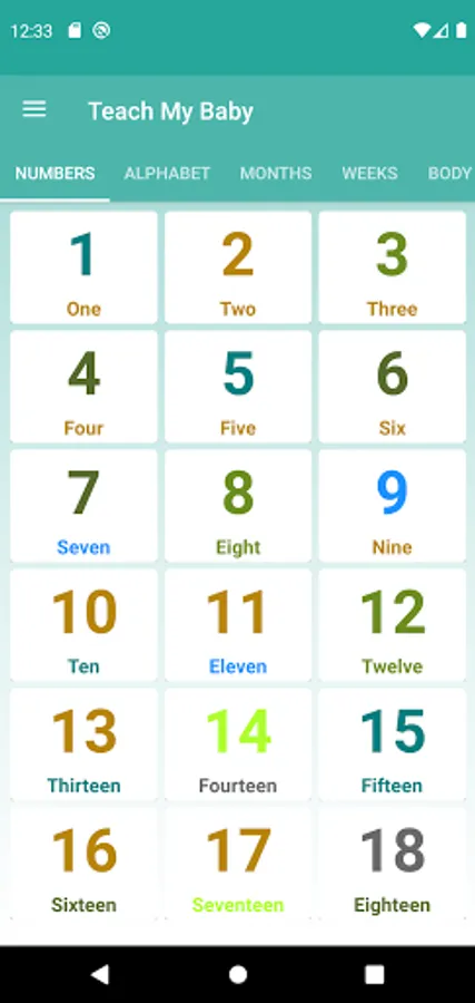 TMB is basic learning app for kid to learn Numbers, Alphabet, Animal names, Dry fruit names, Body part, Color name, Month, Week of day and more easily in an interactive and funny way. It is the best pre-school learning app for kids to learn during their pre-school.