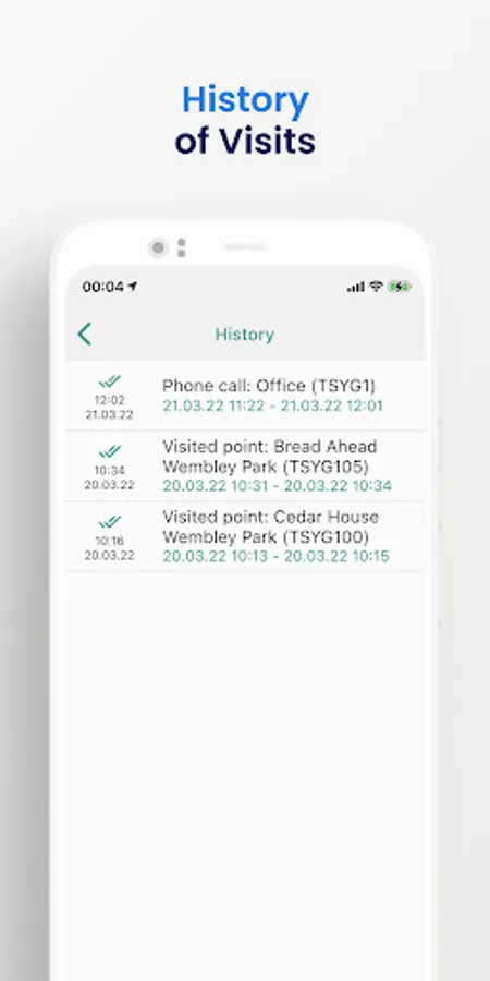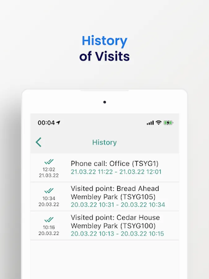 If there is no Internet access, data about the visit (call) to the point is stored on the device and will be sent later when Internet access becomes possible.