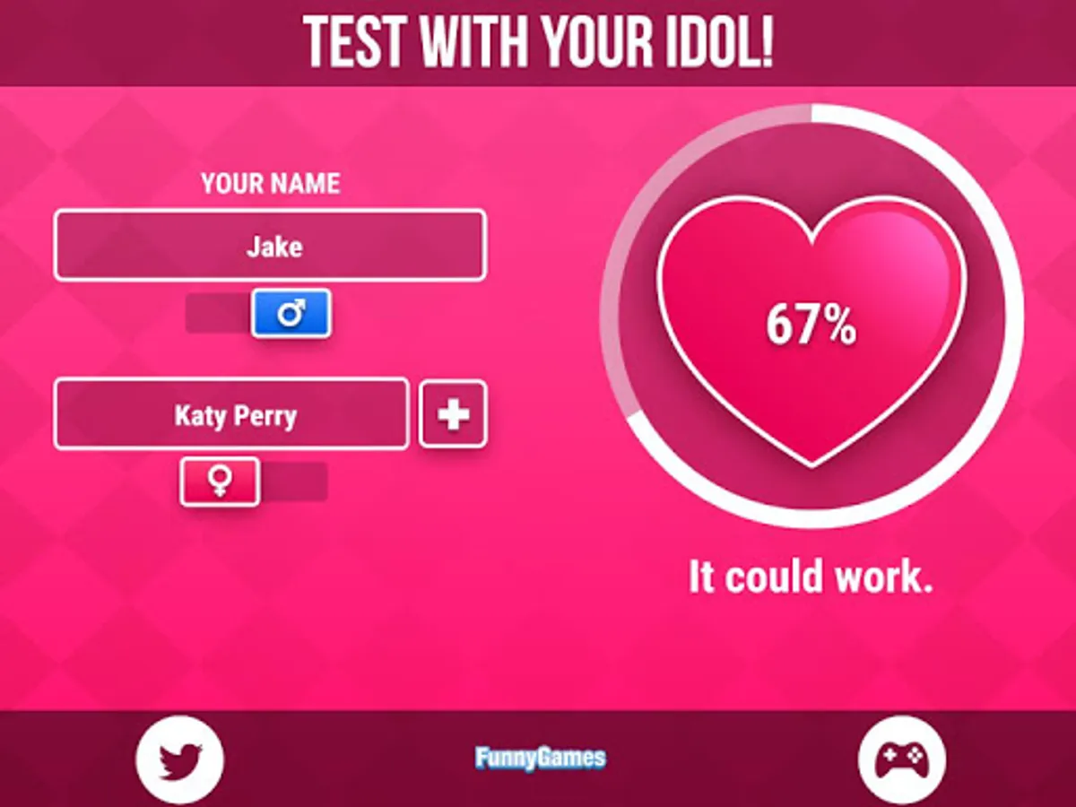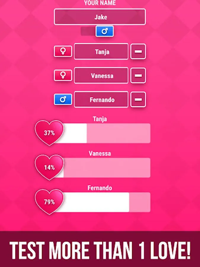 - The 2048 year old love tester algorithm will generate a personalized love percentage.