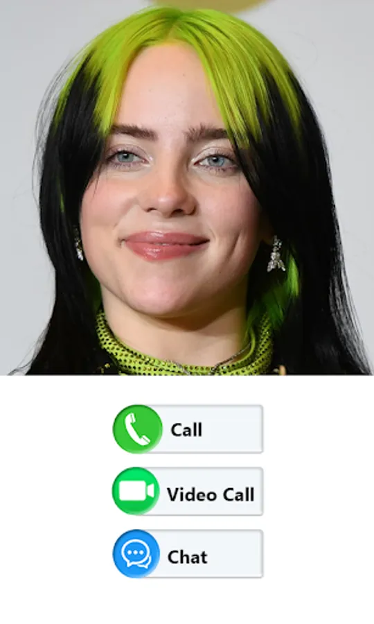 Billie Eilish Fake Video Callapp to helps to fun and fake chat and video call with Billie Eilish.