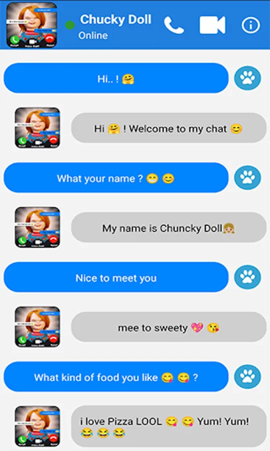 Fake Video Call from Chunky will allow you to receive a fake video, voice call or chat from your favorite scary doll "chucky",
