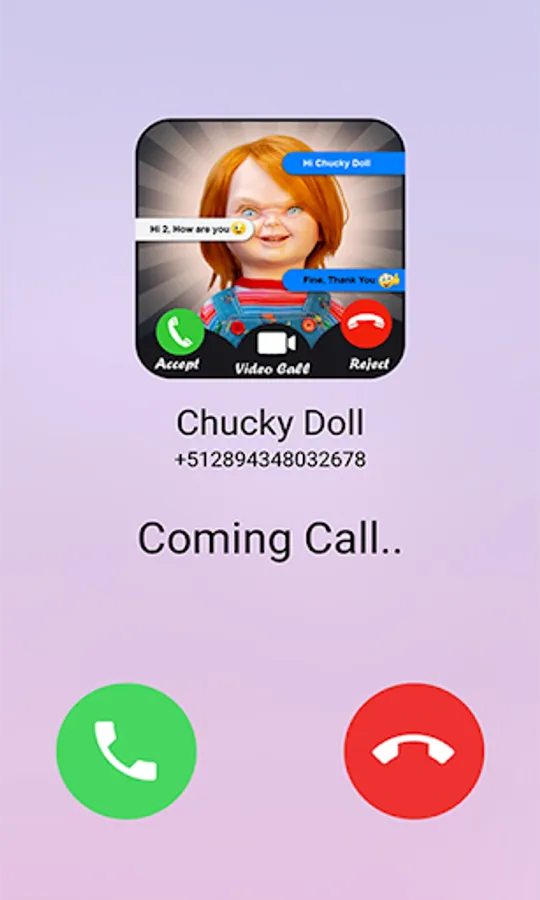 Call Chucky Doll | Fake Video Call application to accompany your days in your spare time. When you feel lonely and boring, entertain yourself with fake video calls and Chat from your Idol. Application contains images that you can set as wallpaper in your home or cellphone lock. Get and download this Fake Video Call from Chunky for free. You will feel how close you are to your Idol