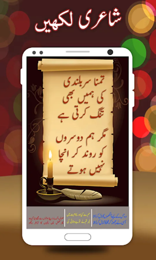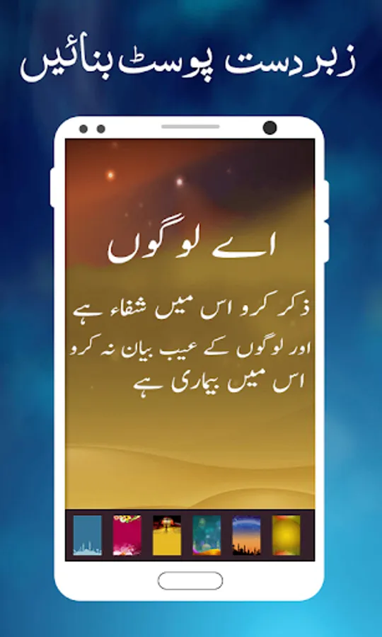 urdu writing app user can easily use as urdu poster maker. Urdu Post / Photo Editor is to add text on photos with attractive designs and urdu writing app. Urdu post maker help you for creating & making posts and make an advertisement for business, media groups, poetry/shairy writers, Islamic post designers and Urdu Post maker. Make Urdu Post by doing effects & panaflex maker in urdu . urdu writing app on photos and images of your favorite stylish fonts makes your panaflex easily by post maker and writing urdu. Urdu text on photo will have not only fonts & stickers but collection of hd backgrounds. Write Urdu Poetry or select from collection. Write in Urdu is now in trend.