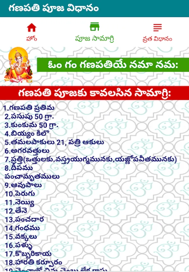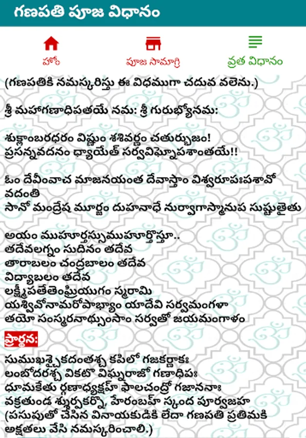 Ganapathi Pooja Vidhanam in telugu with mantras and slokas