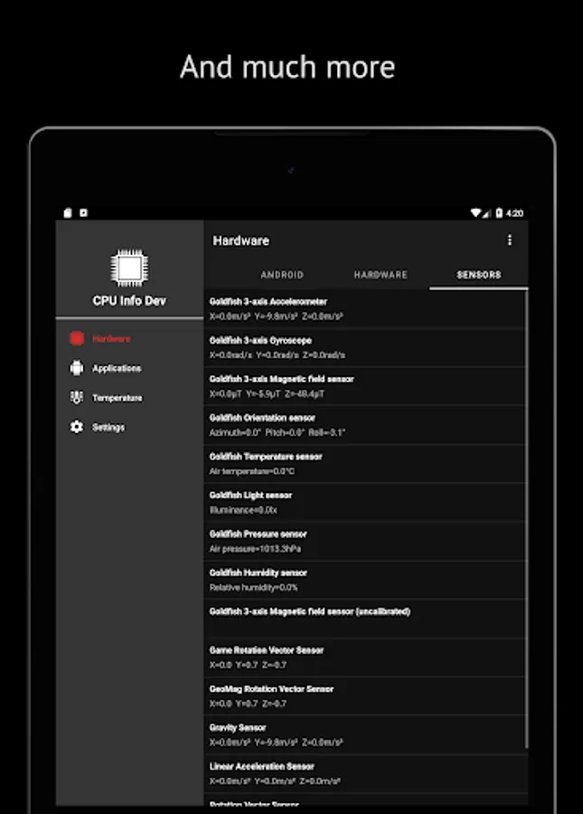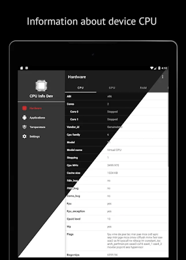 CPU Info provide main information about hardware and software of your device: