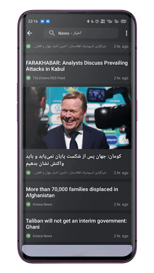 6- Ability to search for a topic or specific news in the program by writing the topic in the search.