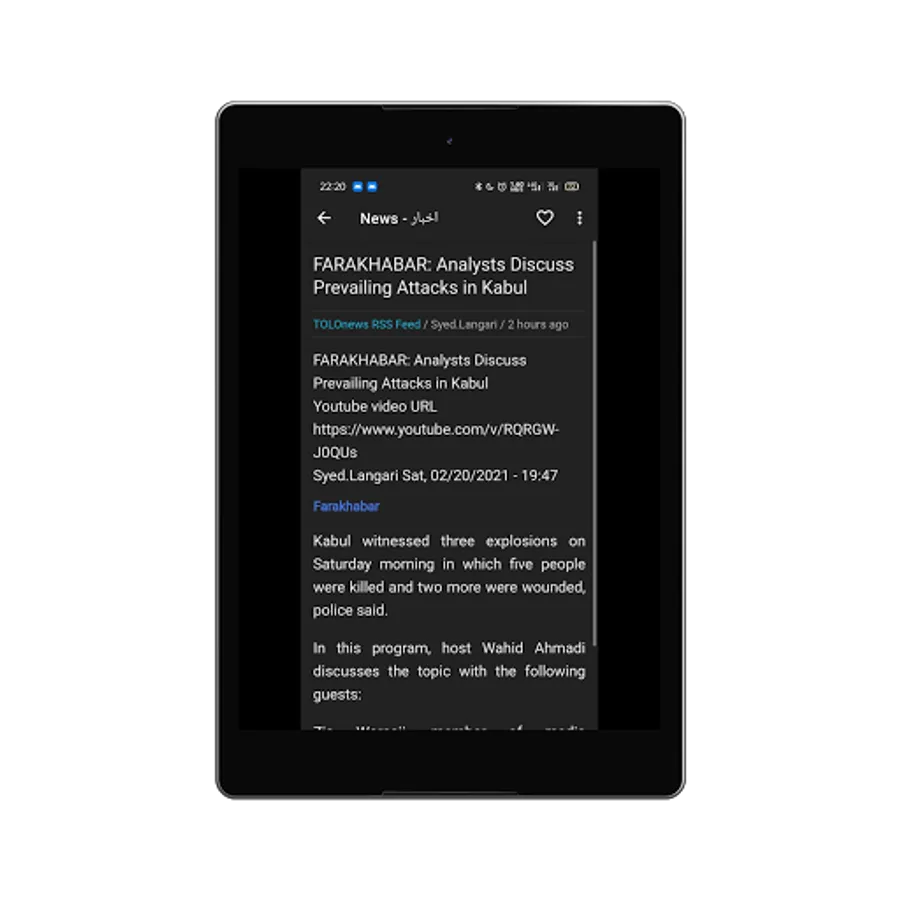 Stay up to date with the latest news from Afghanistan with this breaking news application. Get the latest news, updates, and stories from Afghanistan, all in one place. Stay informed and stay connected with the political, economical, social, and cultural developments in Afghanistan as they occur.