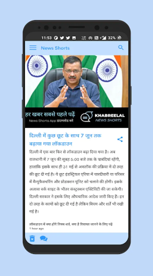 Khabreelal News Shorts is a 📰short news app that presents you with the latest news, videos, blogs, summarized news and updates in around 75 words in Hindi. Download the app and stay updated about latest breaking news around the world at your fingertips right from: