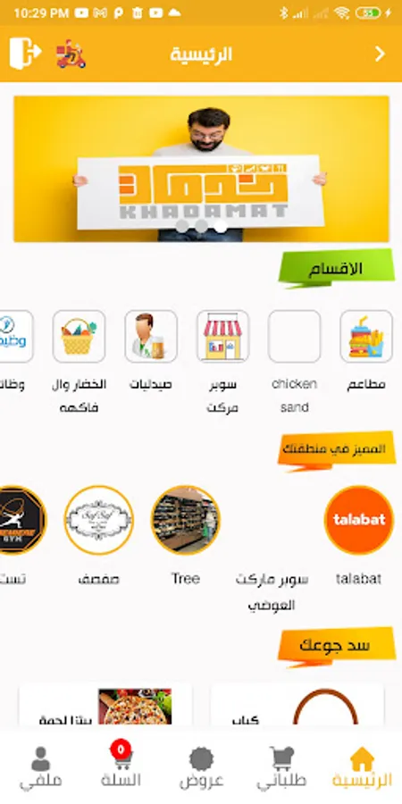 تمتلك حساب فقم بالضغط علي انشاء حساب خاص بك و من ثم الدخول في التطبيق عند الدخول يظهر لك في الصفحة الرئيسية التصنيفات و المميز ف منطقتك من المحلات في جميع التصنيفات