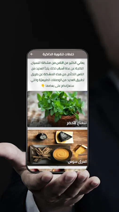 Many people suffer from the problem of forgetfulness, resulting from several reasons, including: advanced age, malnutrition, lack of exercise, lack of sleep, and other reasons that affect the natural course of life, and increase its difficulty, and the feeling of embarrassment. And anxiety, so many people resort to taking pills to strengthen memory, such as nutritional supplements for vitamins and minerals, and others, bearing in mind that it is possible to get rid of this problem by applying many natural recipes, some of which we will introduce you to in this application.