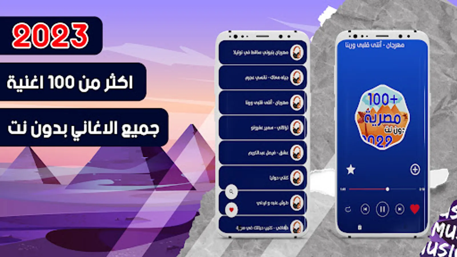 The application contains popular Egyptian songs without the net and carefully selected 2023 festivals.