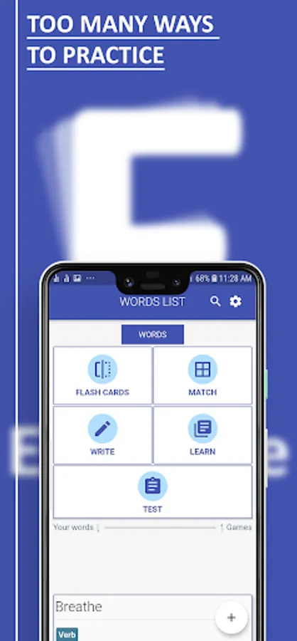 Learn English languages more effectively with study modes that allow you to memorize vocabulary, idioms, and sentences
