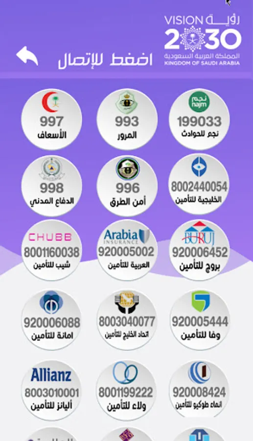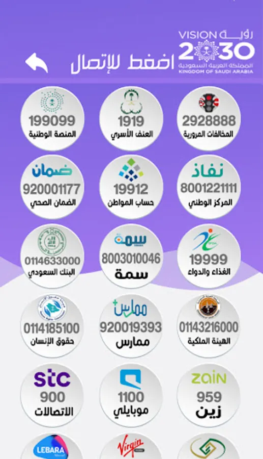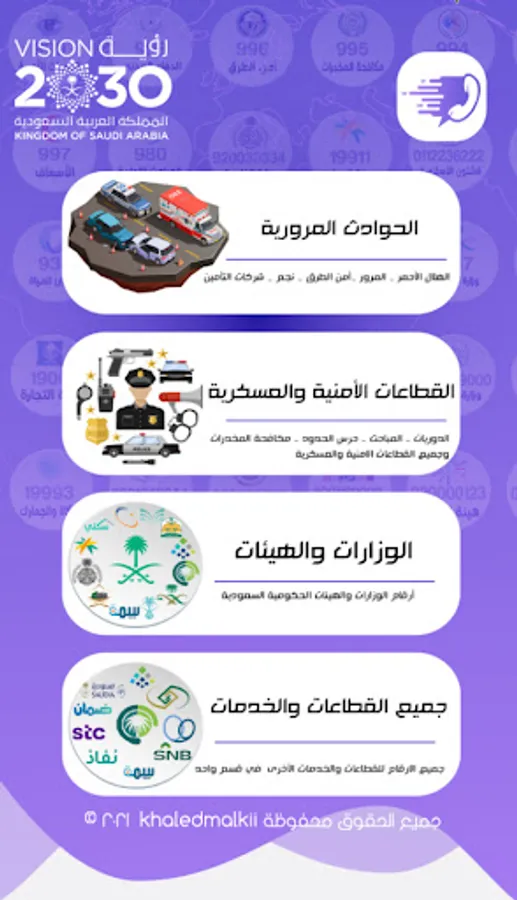 A number wallet that contains all the numbers of government and military departments, all services and banks in the Kingdom of Saudi Arabia, with the click of a button, the connection is made without the need for the Internet
