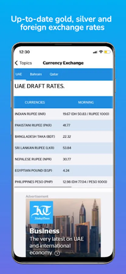 The UAE's first English language newspaper, Khaleej Times a trusted news source for over four decades brings to you a native live news app that will always keep you updated on the latest news, gold rates, exchange rates and prayer timings. Use our new feature to personalize your app by choosing your topics of interest to follow. Helping you to understand what is happening in the UAE and around the world, our news coverage will ensure that you are kept up to date with all your news preferences.