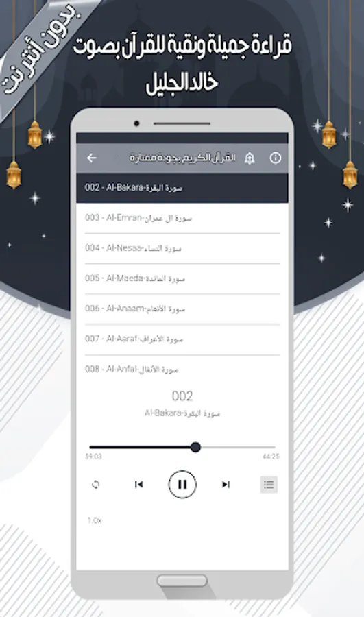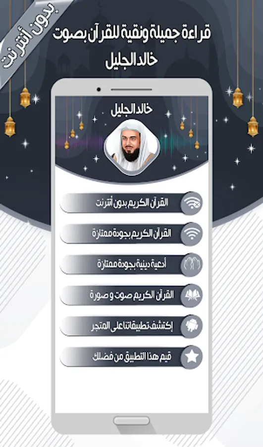 The application of the Noble Qur’an with the voice of Khaled Al-Jalil allows you to hear all the surahs of the Noble Qur’an through your mobile phone or tablet with ease and ease through one program that contains all the surahs of the Noble Qur’an. for Android phones. In order to enjoy reciting the Noble Qur’an with the voice of Sheikh Khaled Al Jalil wherever you want.