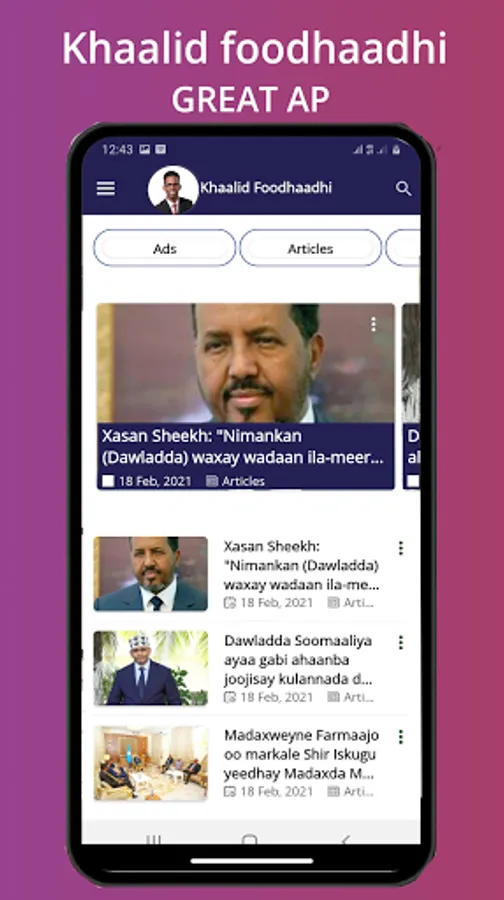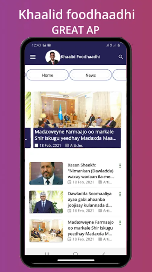 Latest news, programs, reports, stay tuned to Khaalid Foodhaadhi App.