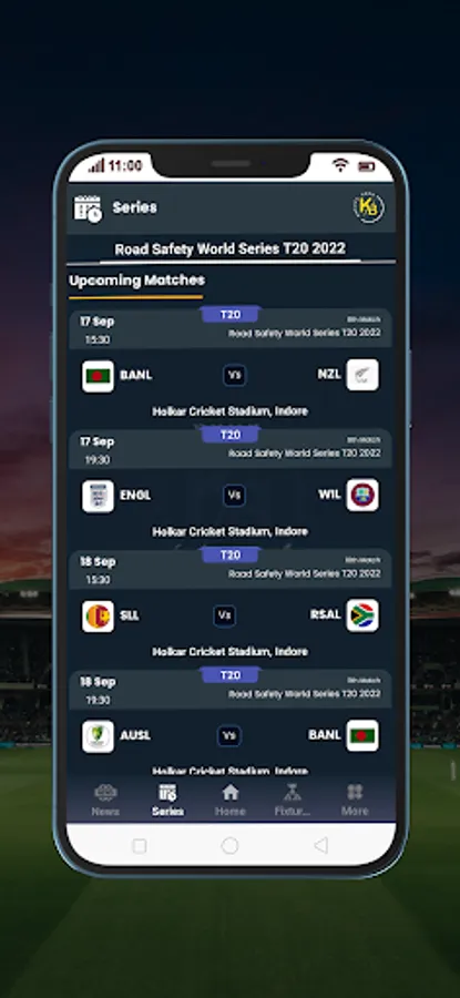 Khalifa Live Line mobile app shows All the international and domestic cricket season like Indian T20 League, World T20,
