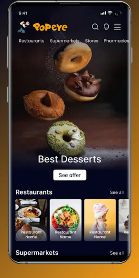 With Popeye Delivery, you can now shop easily and effortlessly. Where the application provides many restaurants with all the food you need (of all kinds and brands). The application also provides delivery service to any place in order to save time and effort for users.