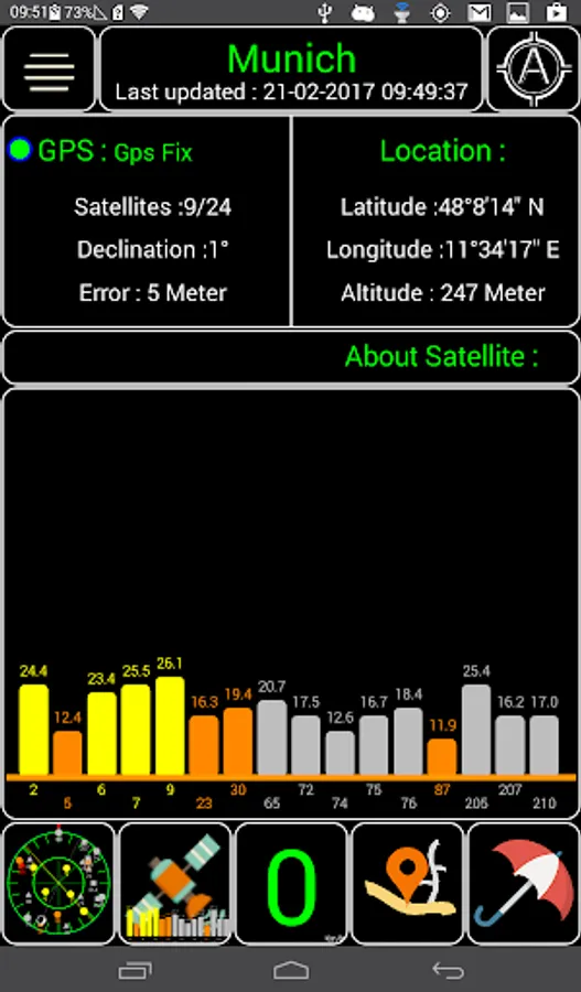 1- Know the location of satellites in space compared to your location , this location are Illustrated on a compass in different forms(gps in a circle form,glonass in the form of a triangle and other forms for the other satellites......)