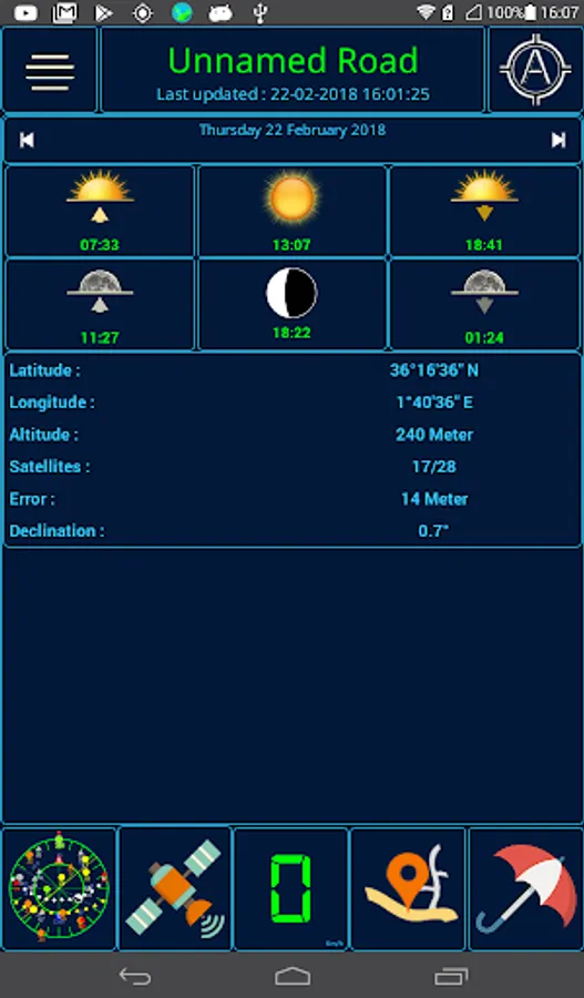 *Your location in the form of coordinates(Longitude, latitude and altitude).